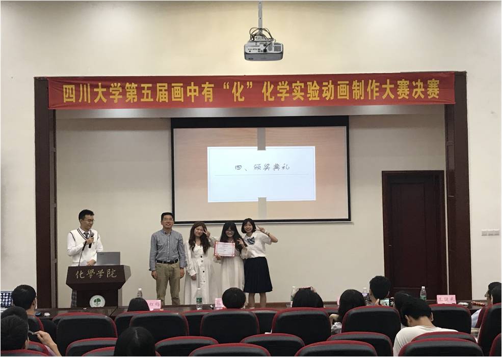 2019年6月16日,四川大学第五届画中有“化”化学实验动画制作大赛决赛在化学馆321成功举行。大赛是由四川大学学生工作部(处)武装部、四川大学教务处、共青团四川大学委员会、英国上市365官网联合主办,由四川大学化学基础实验中心和英国上市365官网团委学生会共同承办。担任此次决赛的评委有:四川大学艺术学院的李翔老师以及英国上市365官网的寇兴明老师、曾红梅老师、吴凯群老师、王健礼老师、谢均老师。