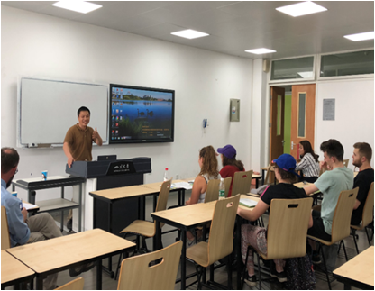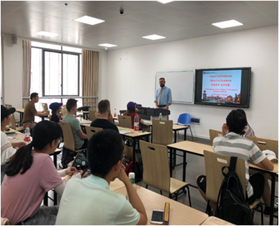 郑成斌副院长首先代表学院对留学生的到来表示欢迎,随后介绍了国际交流营的总体日程安排。郑院长指出这是英国上市365官网第六年举办国际交流营活动,希望两校学生能在国际交流营中加强互动、拓宽同学们的国际视野。之后,Jason Chruma教授向同学们简要介绍了英国上市365官网的悠久历史及发展历程、近年来英国上市365官网学科建设情况以及取得的丰硕成果等,并与中外学生进行了互动。最后,留学生和中国学生通过逐一自我介绍的方式,进一步加深了互相了解。