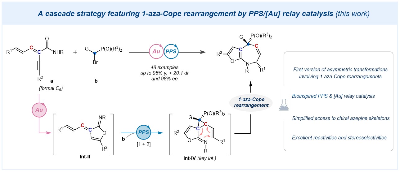 图1. PPS/[Au] 接力催化精准合成手性氮杂䓬类分子
